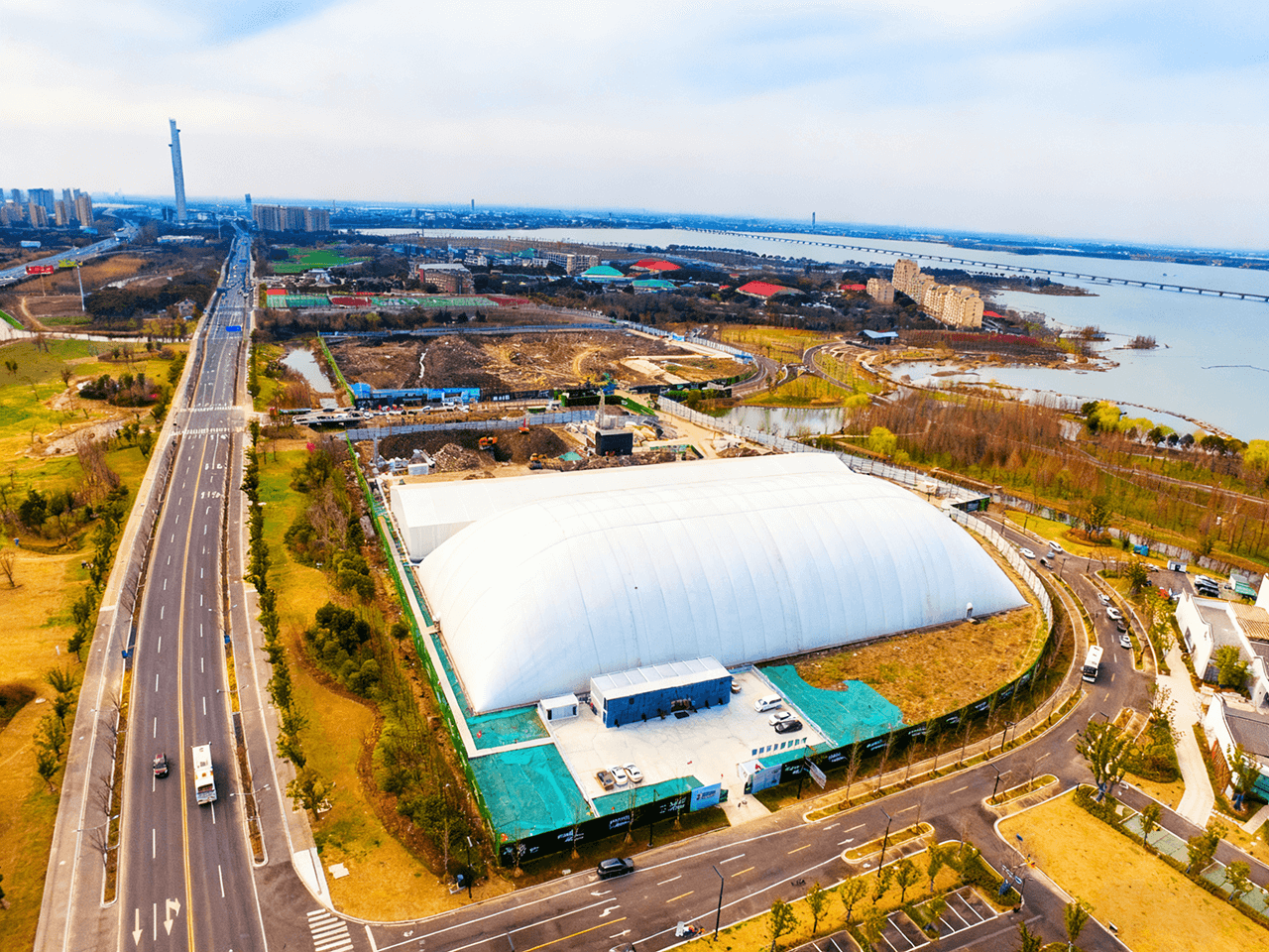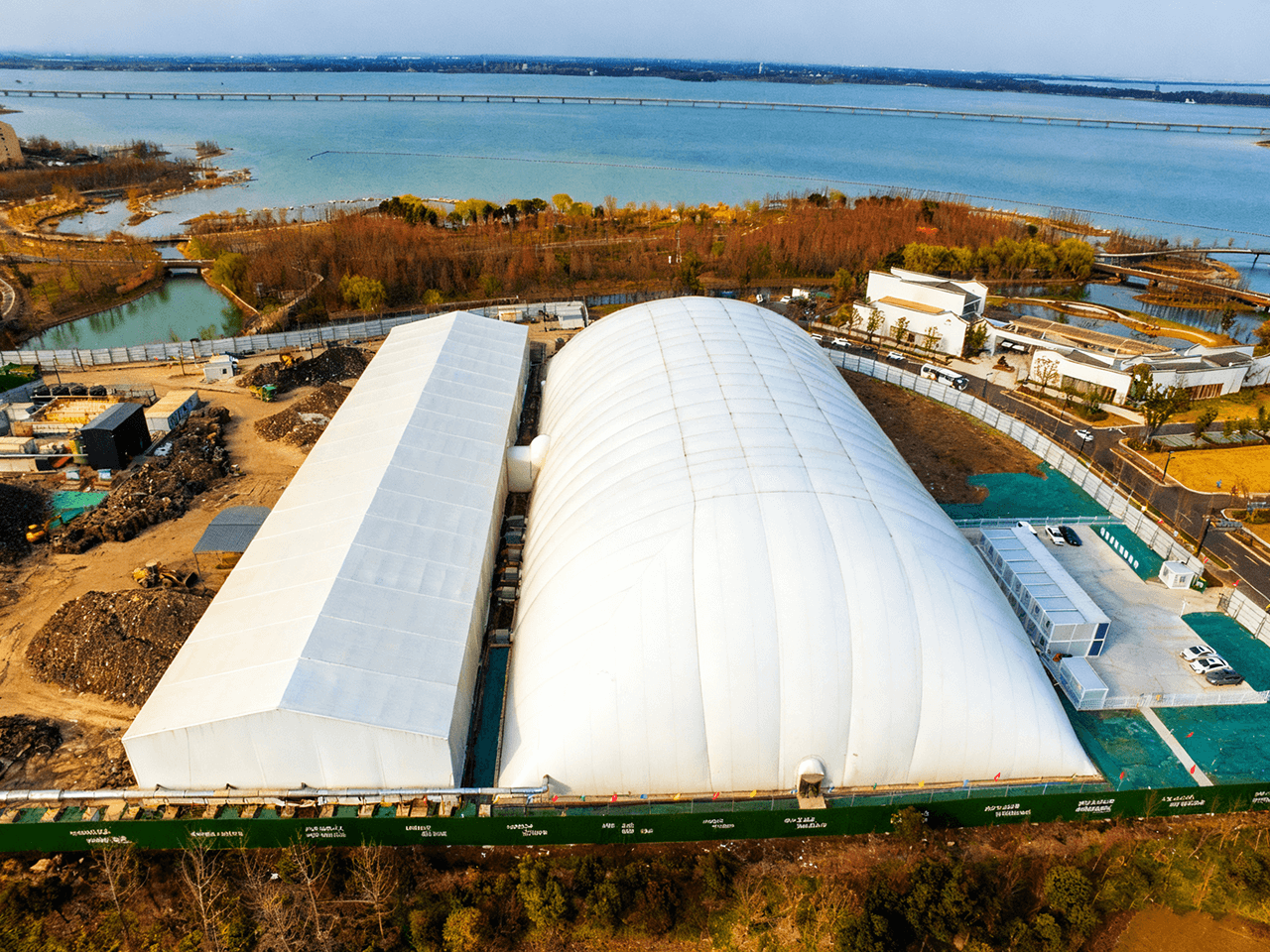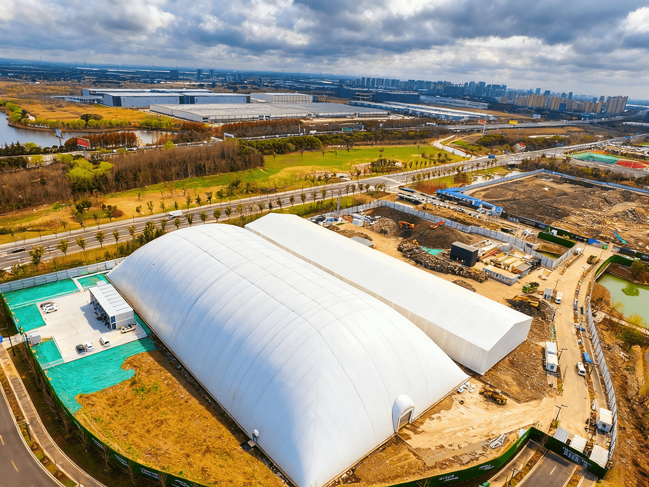 The EBSTSZFH01 Air Dome, utilizing advanced Air Dome technology, presents a striking architectural solution. Its sleek, white curved structure stands out in the landscape, seamlessly integrating with the surrounding environment. The air-supported design ensures efficient space utilization and rapid deployment, making it suitable for various applications such as industrial storage, sports facilities, and event venues.