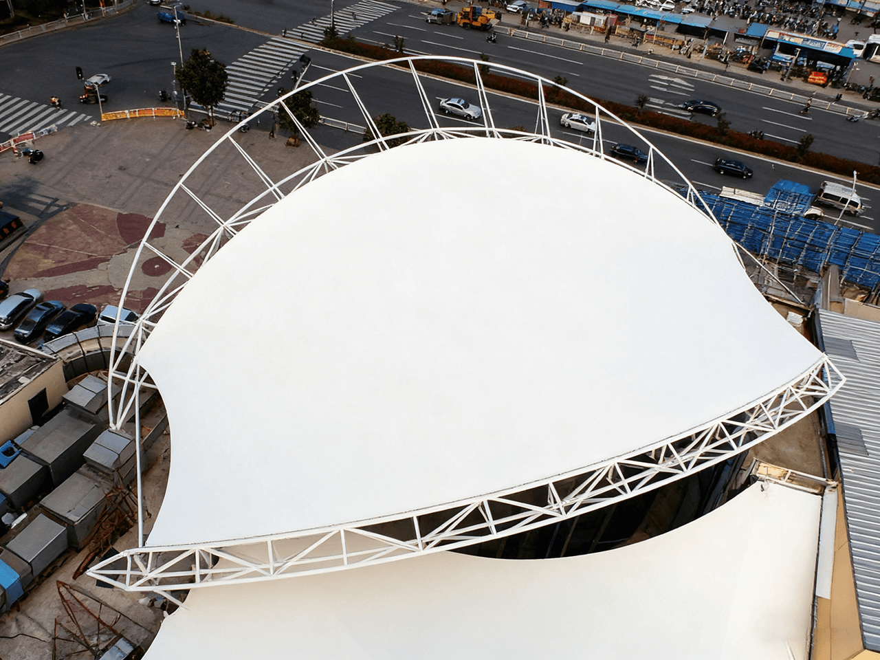 From the perspective of architectural structure, it adopts a cantilevered structural system. The steel skeleton, with its rational force - bearing layout, forms a stable supporting framework. The membrane material is tensioned to form a series of smooth and dynamic curved surfaces, which not only effectively spans the grandstand space but also endows the structure with a sense of lightness and technological sense.