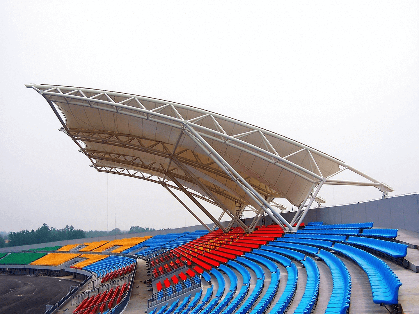 From the perspective of architectural structure, it adopts a cantilevered structural system. The steel skeleton, with its rational force - bearing layout, forms a stable supporting framework. The membrane material is tensioned to form a series of smooth and dynamic curved surfaces, which not only effectively spans the grandstand space but also endows the structure with a sense of lightness and technological sense.