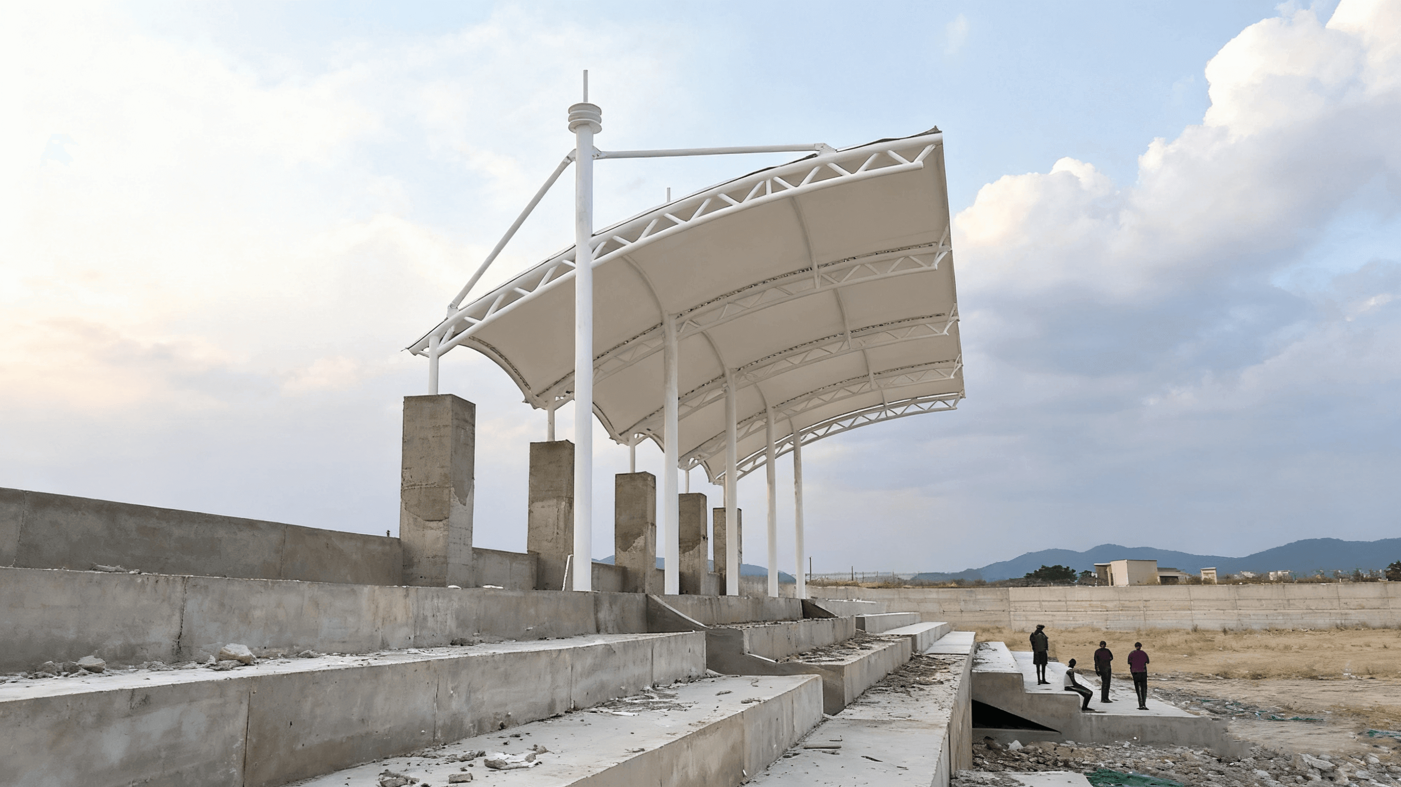From the perspective of architectural structure, it adopts a cantilevered structural system. The steel skeleton, with its rational force - bearing layout, forms a stable supporting framework. The membrane material is tensioned to form a series of smooth and dynamic curved surfaces, which not only effectively spans the grandstand space but also endows the structure with a sense of lightness and technological sense.