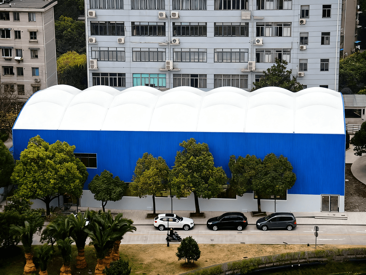 From the perspective of architectural structure, it adopts a cantilevered structural system. The steel skeleton, with its rational force - bearing layout, forms a stable supporting framework. The membrane material is tensioned to form a series of smooth and dynamic curved surfaces, which not only effectively spans the grandstand space but also endows the structure with a sense of lightness and technological sense.