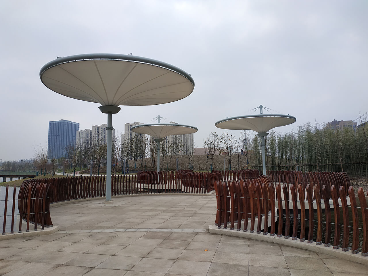 From the perspective of architectural structure, it adopts a cantilevered structural system. The steel skeleton, with its rational force - bearing layout, forms a stable supporting framework. The membrane material is tensioned to form a series of smooth and dynamic curved surfaces, which not only effectively spans the grandstand space but also endows the structure with a sense of lightness and technological sense.