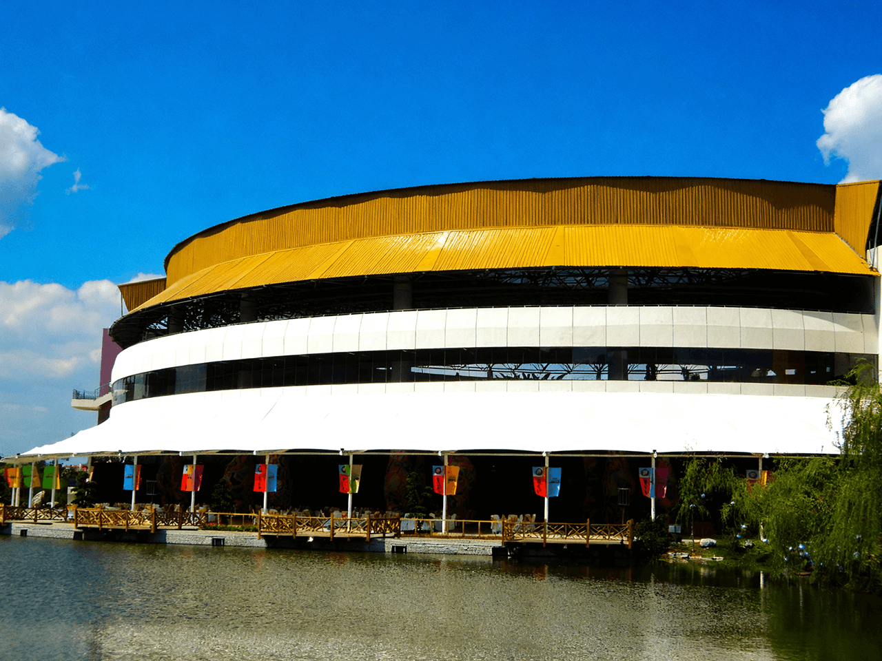 From the perspective of architectural structure, it adopts a cantilevered structural system. The steel skeleton, with its rational force - bearing layout, forms a stable supporting framework. The membrane material is tensioned to form a series of smooth and dynamic curved surfaces, which not only effectively spans the grandstand space but also endows the structure with a sense of lightness and technological sense.
