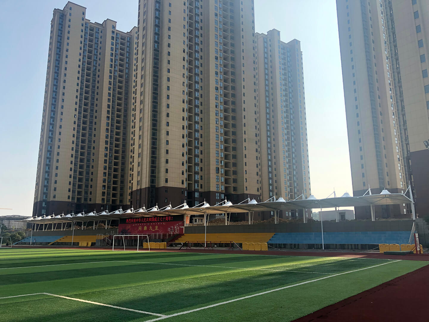 From the perspective of architectural structure, it adopts a cantilevered structural system. The steel skeleton, with its rational force - bearing layout, forms a stable supporting framework. The membrane material is tensioned to form a series of smooth and dynamic curved surfaces, which not only effectively spans the grandstand space but also endows the structure with a sense of lightness and technological sense.