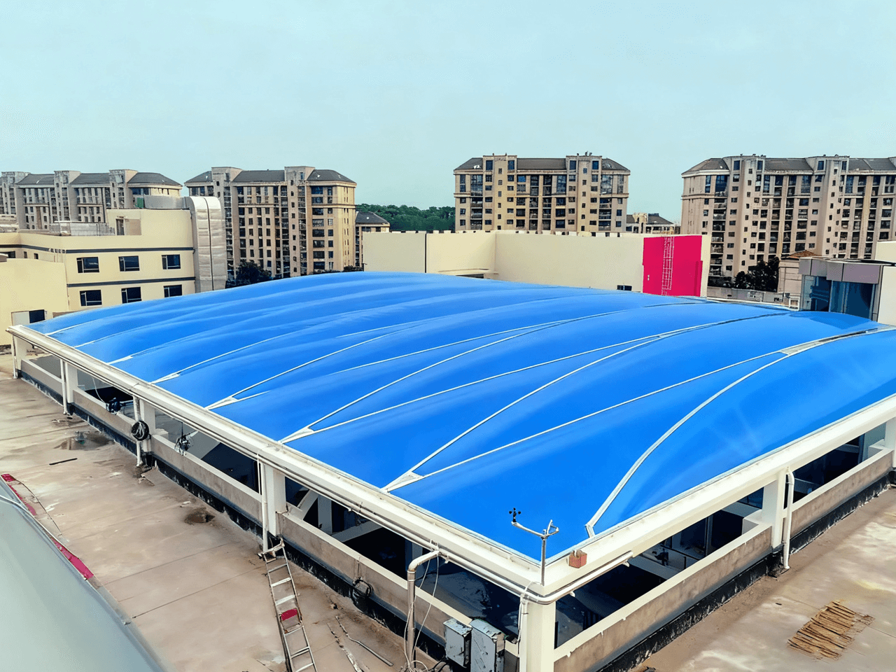 From the perspective of architectural structure, it adopts a cantilevered structural system. The steel skeleton, with its rational force - bearing layout, forms a stable supporting framework. The membrane material is tensioned to form a series of smooth and dynamic curved surfaces, which not only effectively spans the grandstand space but also endows the structure with a sense of lightness and technological sense.